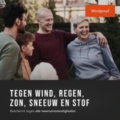✓ Windproof – Niets is vervelender dan een hoes die opwaait bij een flinke storm. Dat is geen probleem voor deze hoes, want je maakt hem eenvoudig stevig aan de onderkant vast, waardoor zelfs de meest hardnekkige windvlaag geen invloed heeft op de bescherming.