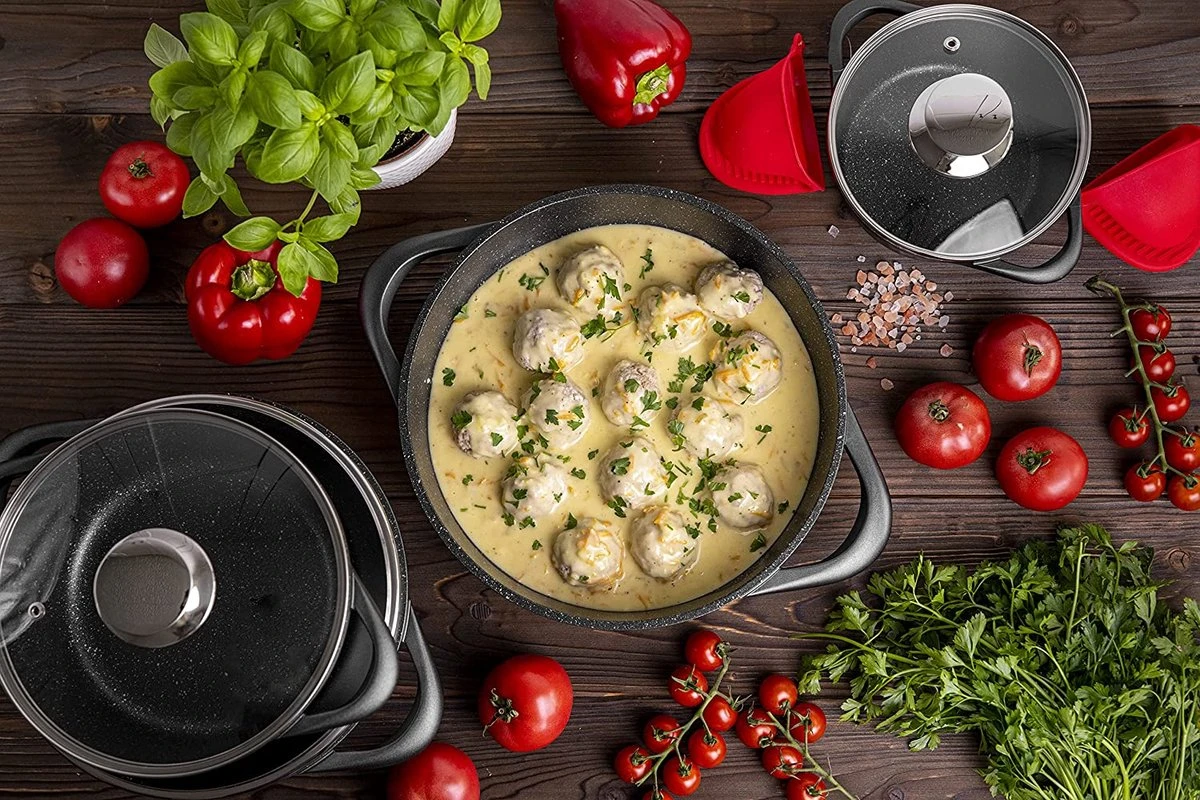 Smile 10-Delige Pannenset – Anti Aanbaklaag – Vaatwasser Bestendig – Zwart – MGK-17
