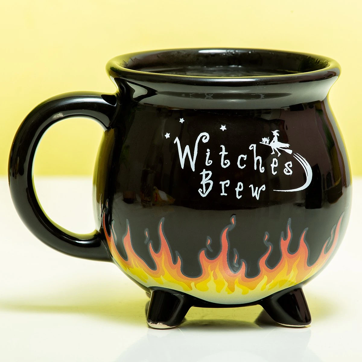 Mok in de vorm van een heksenketel van WinkeeHeksen staan erom bekend: ze kunnen allerlei magische drankjes brouwen. En met de Heksenketel warmtegevoelige mok van Winkee kun jij dat nu ook. Deze grappige mok, in de vorm van de ketel, gebruik je bijvoorbeeld om heerlijke thee of koffie in te maken. De mok is zwart en heeft een bedrukking met een vliegende heks en de tekst Witches Brew. Schenk je er warme drank in dan gebeurt er iets bijzonders. De vlammen onder de ketel worden dan oranje en geel. Koelt de drank af, dan verdwijnen de vlammen weer. * Warmtegevoelige mok die lijkt op een heksenketel * Met de tekst Witches Brew * Schenk je een hete drank in de beker, dan verschijnen er vlammen aan de onderkant * Let op: niet geschikt voor in de vaatwasser en magnetron * Inhoud: 400 ml * Afmeting: 14 x 11 x 11 cm
